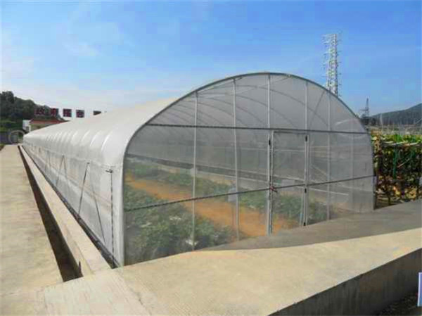 前坡面夜間用保溫被覆蓋,東、西、北三面為圍護(hù)墻體的單坡面塑料溫室,統(tǒng)稱為日光溫室。其雛型是單坡面玻璃溫室,前坡面透光覆蓋材料用塑料膜代替玻璃即演化為早期的日光溫室。日光溫室的特點(diǎn)是保溫好、投資低、節(jié)約能源,非常適合我國經(jīng)濟(jì)欠發(fā)達(dá)農(nóng)村使用。